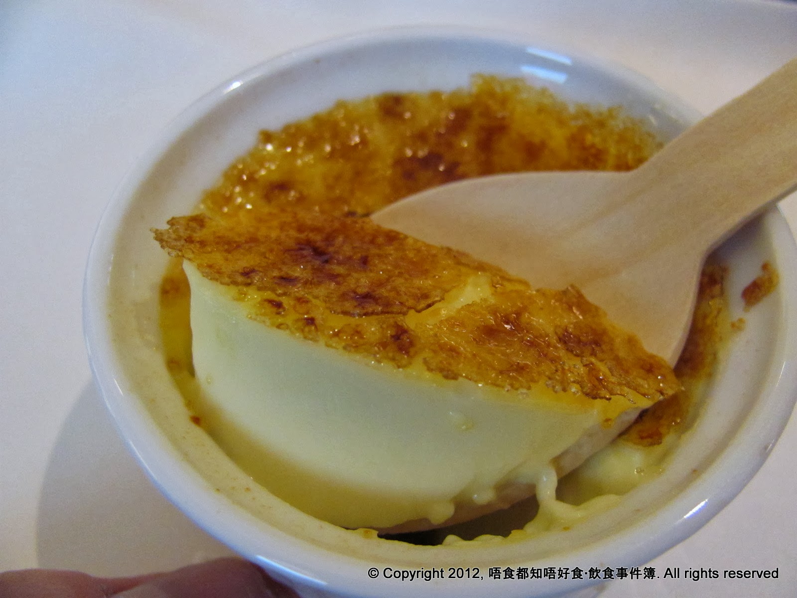 很快大家都有得吃了,這焦糖燉蛋面層的焦糖果真非常非常之薄,薄得是用匙羹輕輕一敲即破,吃起來只有甜甜的焦糖香味,絕對不會過蘸,也沒有為牙齒成為負擔,而裡頭的燉蛋很嫩滑,而且帶有豐富蛋香,最重要就是喜歡它不過甜,坦然在香港也許很難會找到比它好的焦糖燉蛋了。